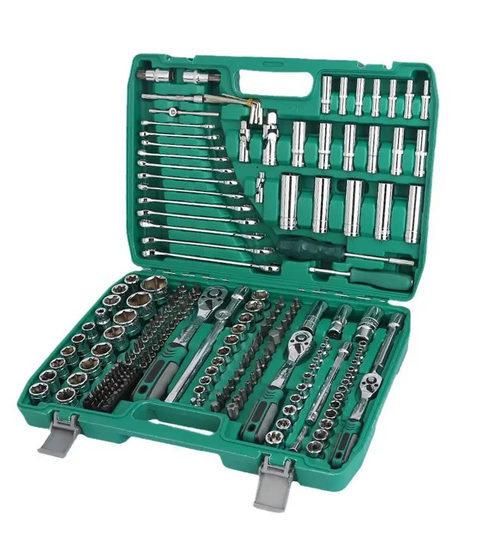 ეს კლუჩების ნაბორი 216 ნაწილიანი შემადგენლობით გამოირჩევა თავისი უნივერსალურობით. ნაკრებში ნახავთ სხვადასხვა ზომის თავაკებს, ტრეშოტკებს, დამაგრძელებლებსა და კომბინირებულ გასაღებებს. თითოეული დეტალი თავის ადგილზეა განლაგებული მყარ, პორტატულ ქეისში, რაც ხელსაწყოების ორგანიზებასა და ტრანსპორტირებას ბევრად ამარტივებს. აღარ მოგიწევთ დროის დაკარგვა საჭირო ზომის გასაღების ძებნაში, რადგან ეს ქანჩების ნაკრები ყველაფერს ერთ სივრცეში აერთიანებს.