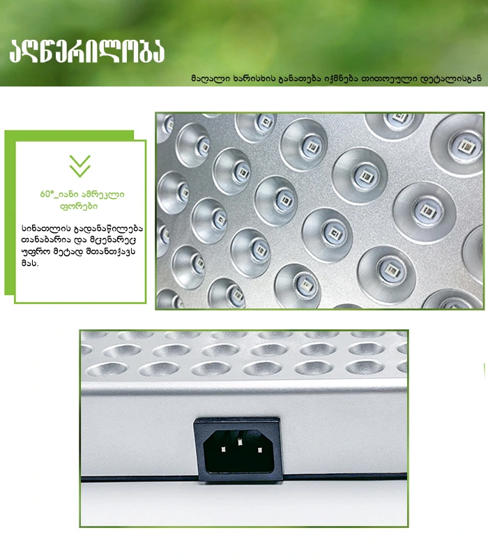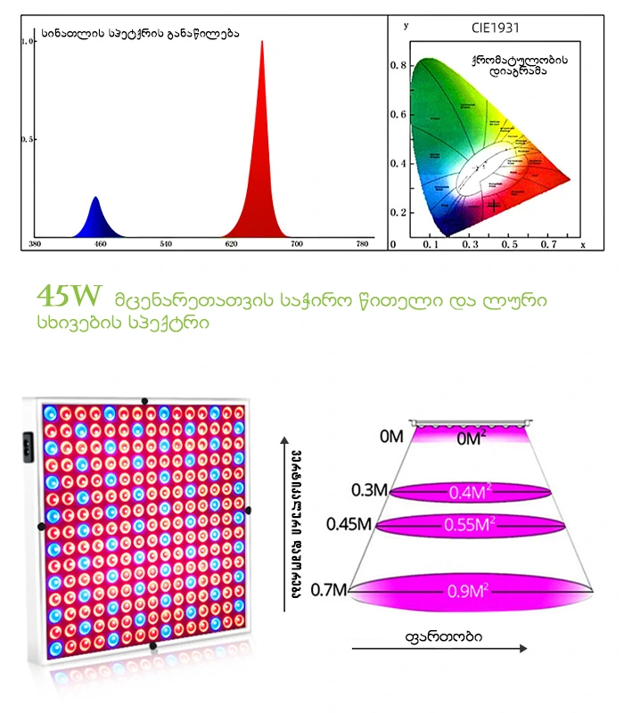 • ტიპი – LED მცენარეების სანათი / სრული სპექტრი