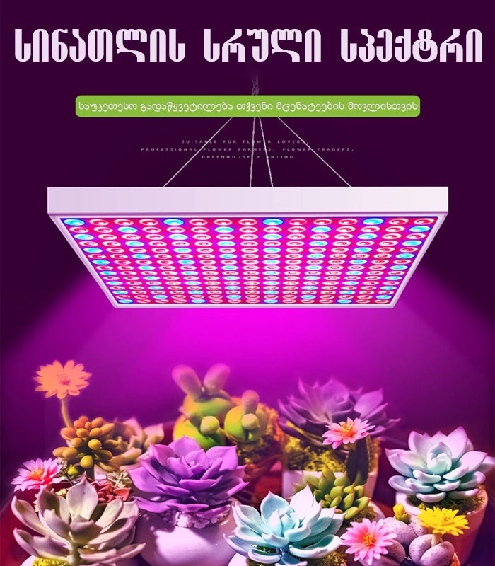 თანამედროვე ტექნოლოგიების წყალობით, დღეს უკვე შესაძლებელია ბუნებრივი სინათლის სრული იმიტაცია. მცენარის განათება არ არის უბრალო შუქი; ეს არის სპეციალური ტალღების ნაკრები, რომელსაც “სრული სპექტრი” (Full Spectrum) ეწოდება. ეს ნიშნავს, რომ სანათი გამოსცემს ზუსტად იმ ფერებს, რაც მცენარეს სჭირდება ფესვების გასაძლიერებლად, ფოთლების გასამწვანებლად და ლამაზი ყვავილობისთვის.